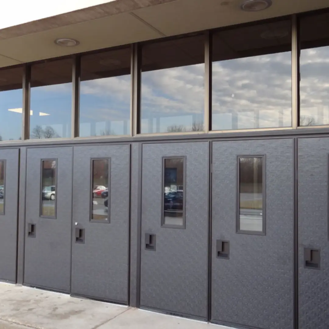 Hollow metal doors are not really hollow. Ours are filled with insulation and heavy duty reinforcement for all hardware preparations. These doors are the industry standard. If we need to put one outside, we typically will supercharge it with galvanization and a pre-painted finish coat. Metal entry doors can be made in a variety of configurations, fire ratings and they can also be made with a CurriStain face sheet, which gives the "look" of wood in a steel door.